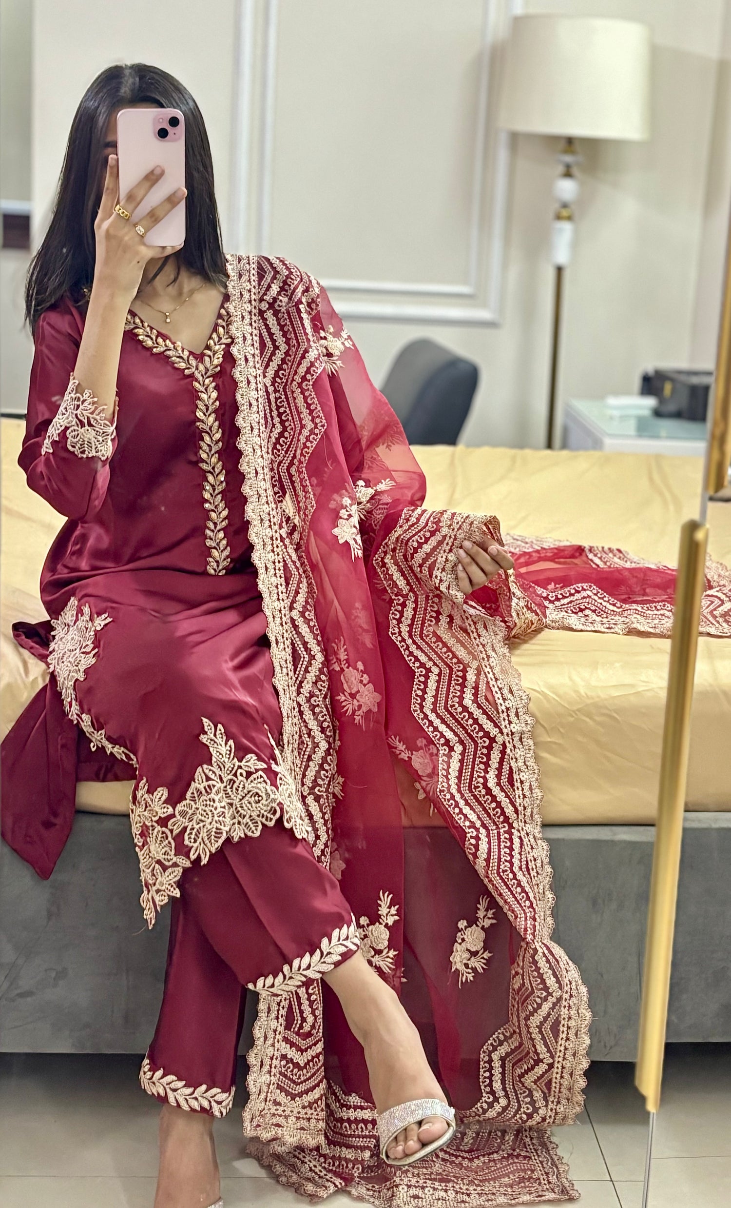 Crimson Aura — Embroidered Luxury 3-Piece Set